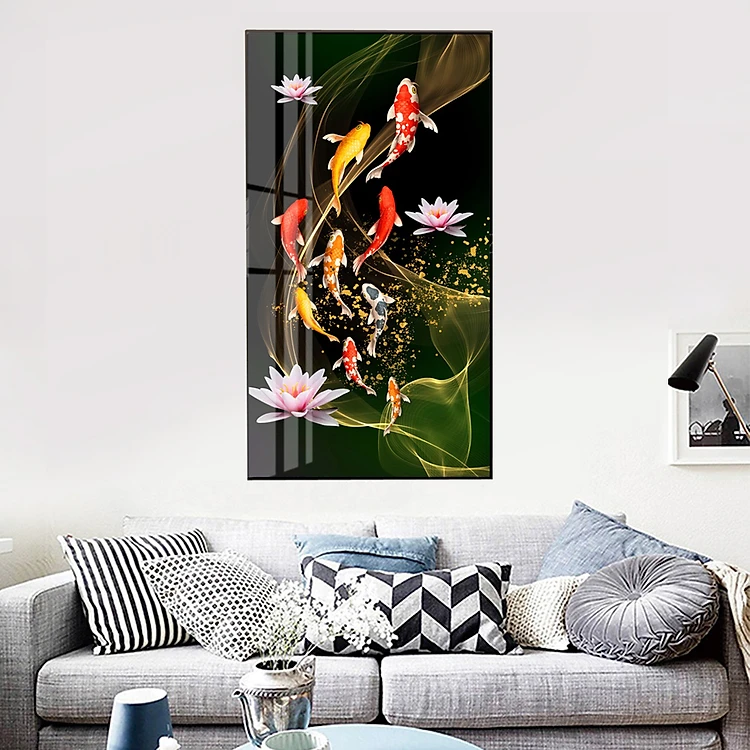 Tranh Treo Tường Tráng Gương PVC-CA Họa Tiết Cá Koi Trang Trí Phòng Khách, Không Gian Bếp Hiện Đại Lịch Sự Sang Trọng.
