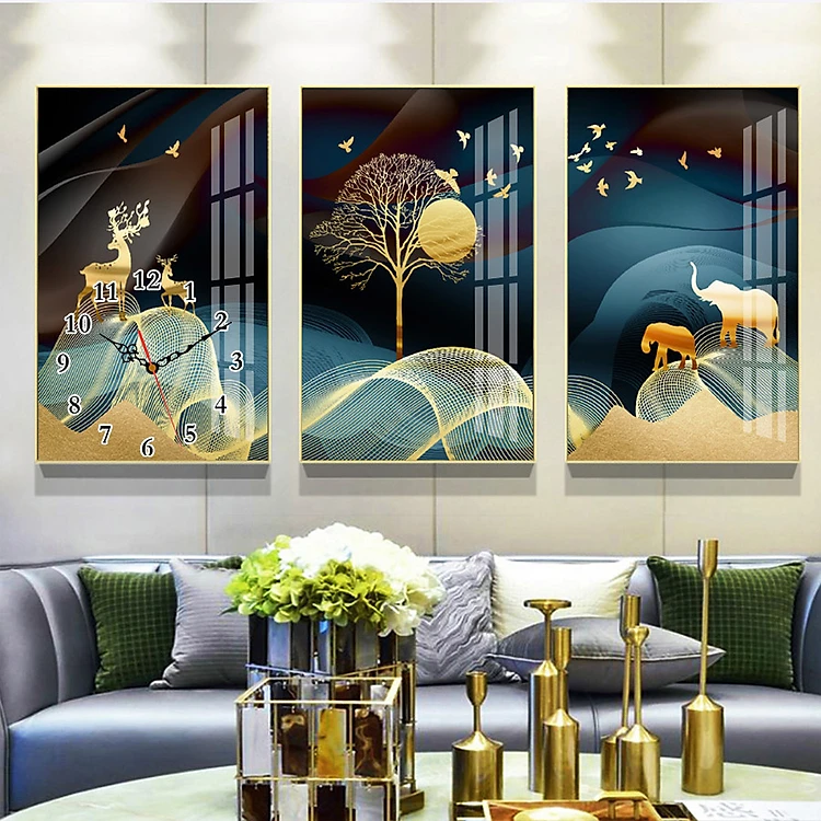 Tranh treo tường, tranh đồng hồ NT197 bộ 3 tấm ghép