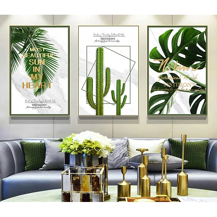 Tranh treo tường- Tranh tráng gương Lá cây Nhiệt Đới- Bộ 3 tấm
