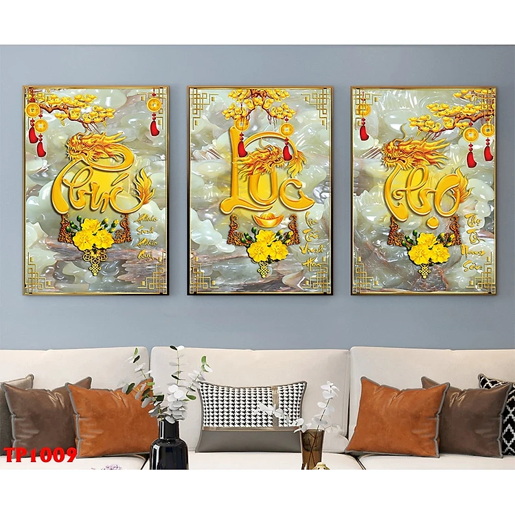 Tranh treo tường- Tranh tráng gương Phúc Lộc Thọ- Bộ 3 tấm
