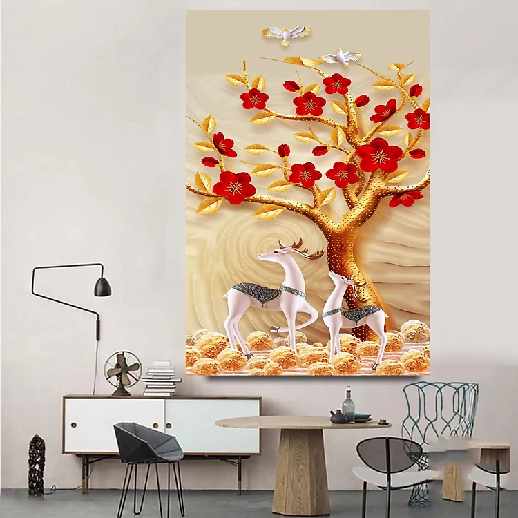 Tranh Treo Tường - Tranh Tráng gương- Tranh Hưu Nai Tranh Đứng