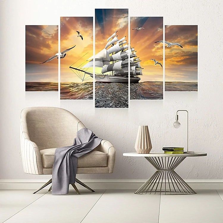 Tranh treo tường, tranh trang trí PP_ NT586A bộ 5 tấm ghép thuận buồm xuôi gió