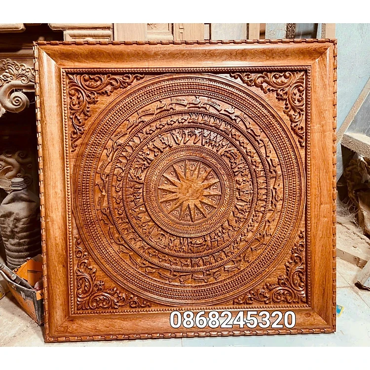 Tranh trống đồng bằng gỗ hương đá kt 81×81×4cm