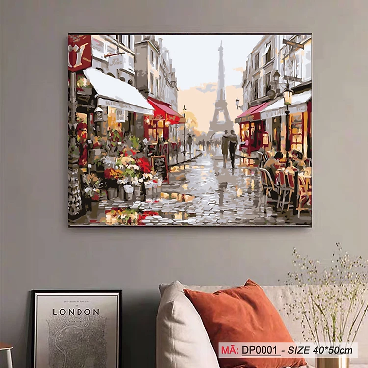 Tranh tự vẽ tự tô màu theo số sơn dầu số hóa phong cảnh phố hoa Paris tháp Eifel DP0001