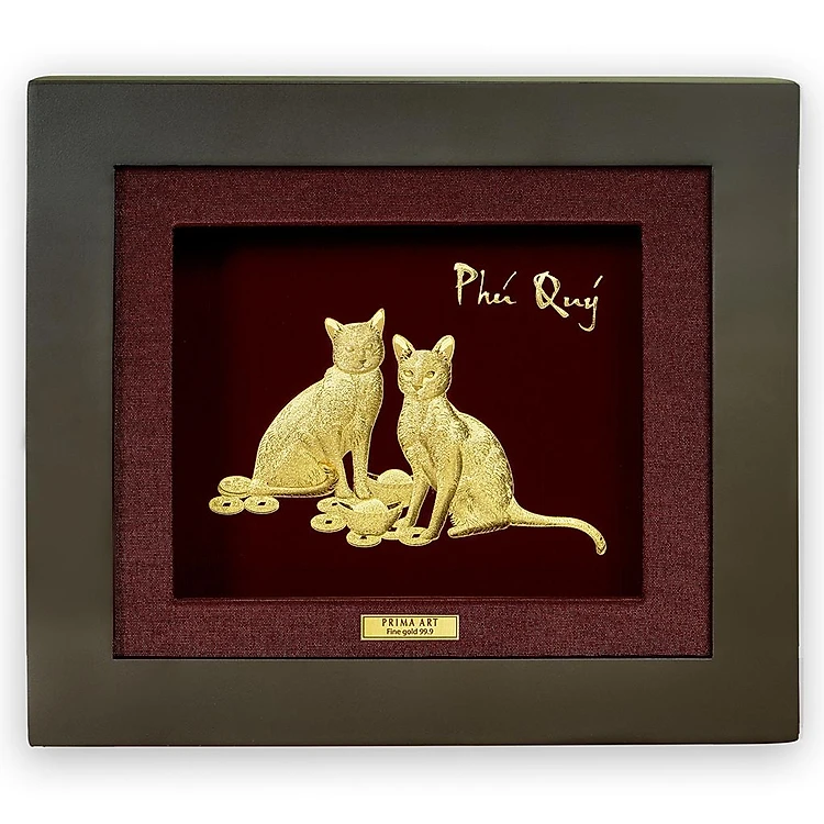 Tranh Vàng 24K PRIMA ART - Mèo Giữ Của - Kích thước 18 x 20 cm - CGS-0411-22