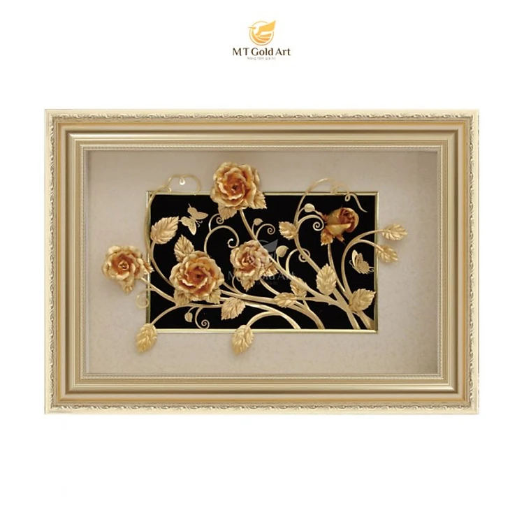 Tranh vườn hoa hồng dát vàng (40x60cm) MT Gold Art- Hàng chính hãng, trang trí nhà cửa, phòng làm việc, quà tặng sếp, đối tác, khách hàng, tân gia, khai trương