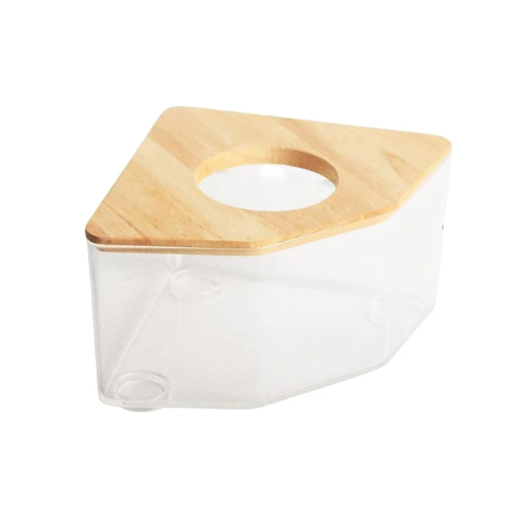 Transparent Hamster Sand Bath Box Toilet Pet Bathroom with Wood Lid Cage Accessory Bathtub for Gerbil Ferret Squirrels Small Animals Mice