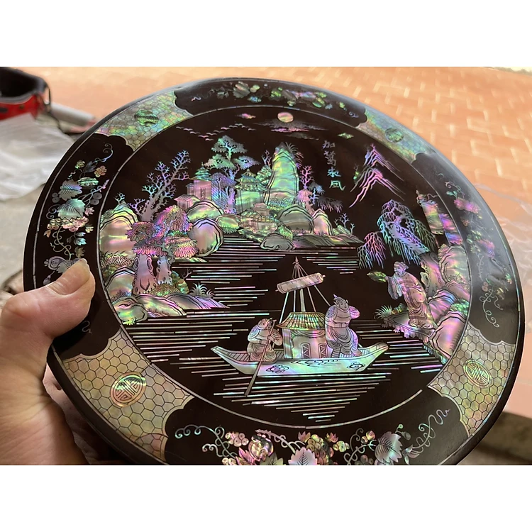 Tráp tròn gỗ gụ đựng bánh kẹo ,trầu cau khảm ốc đỏ singgapore