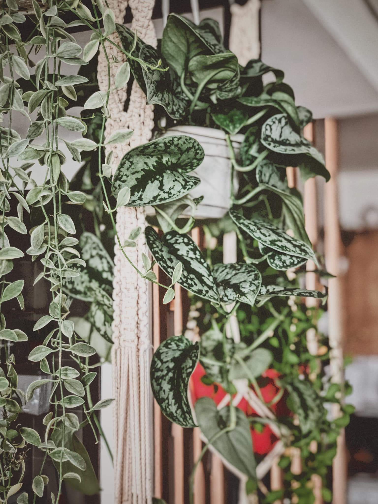 - Cây trầu bà lụa thuộc họ của cây trầu bà, cây sống lâu năm phát triển tốt, thường được trồng trong chậu treo, ốp tường.