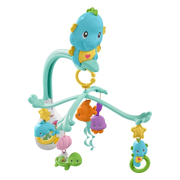 Sản phẩm treo nôi xoay tự động với hình ảnh các bạn sinh vật biển đáng yêu có thể phát nhạc đến 15 phút ru ngủ cho bé.