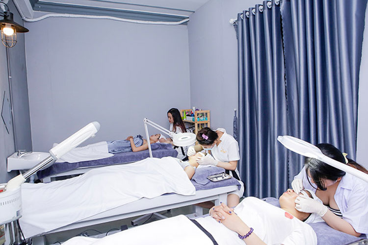 Với dịch vụ điều trị mụn, bạn sẽ được các chuyên gia chăm sóc làm sạch lỗ chân lông, loại bỏ mụn dưới da bằng phương pháp độc quyền không đau và cung cấp các dưỡng chất cho da bằng phương pháp đắp mặt nạ. Để có thể loại trừ hoàn toàn các gốc mụn nằm sâu dưới da, spa sẽ tiến hành thoa thuốc đặc trị mụn giúp diệt khuẩn, ngăn chặn mụn mới phát sinh và lây lan, đồng thời ủ ánh sáng Omega light màu xanh có tác dụng giúp da khỏe mạnh, giảm thâm sau mụn.