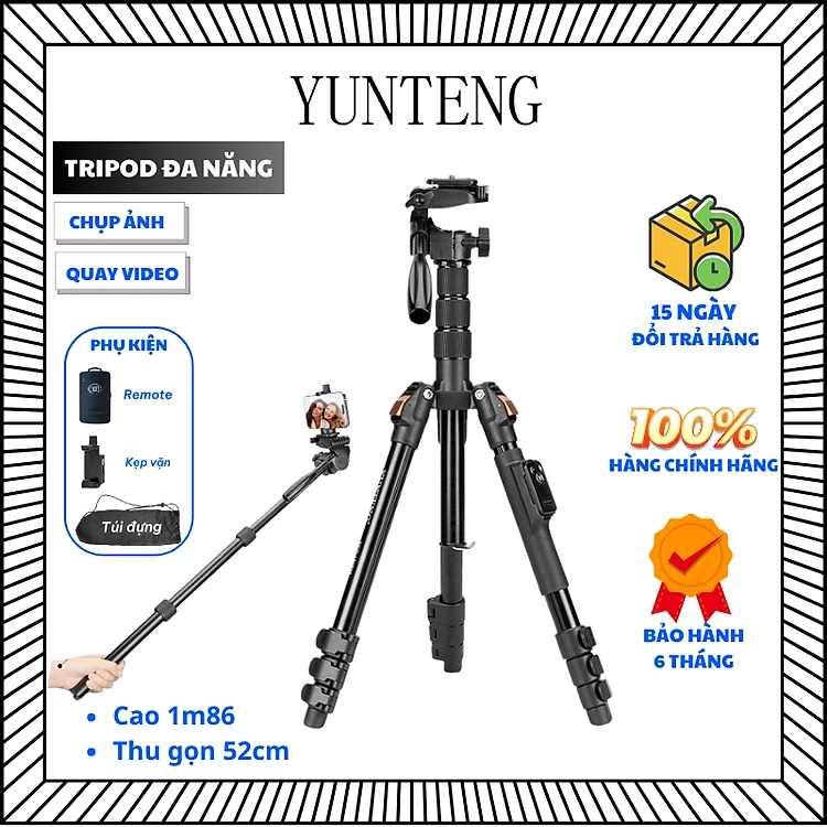 Tripod Yunteng VCT-190 - Chân Đế Máy Ảnh, Điện Thoại ,Tháo Rời Làm Gậy Selfie Kèm Remote Bluetooth - Hàng Chính Hãng