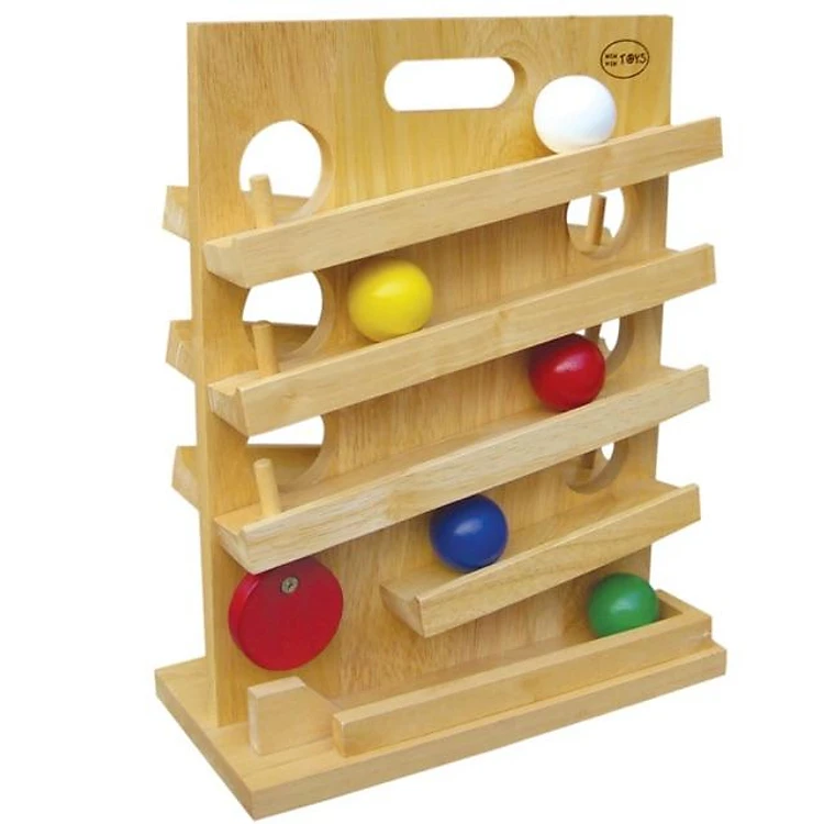 Thiết kế xinh xắn: Các khối gỗ tròn nhiều màu sắc, cùng đường banh lăn có thiết kế độc đáo cho trẻ thích thú vui chơi.