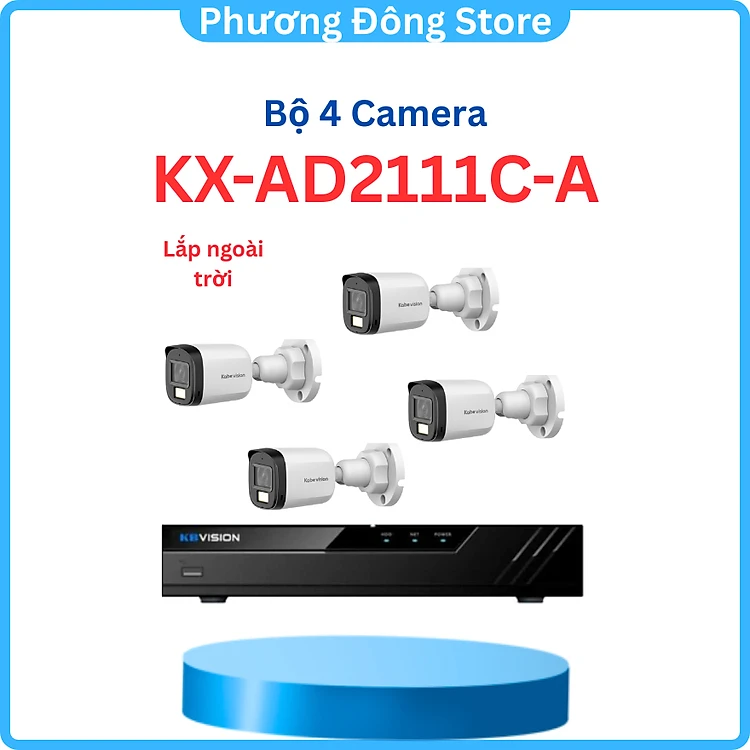 TRỌN BỘ 4 CAMERA Kbvision A2111C4 THAY QUA MÃ KX-AD2111C-A + đầu ghi camera + ổ cứng đầy đủ phụ kiện - Hàng chính hãng