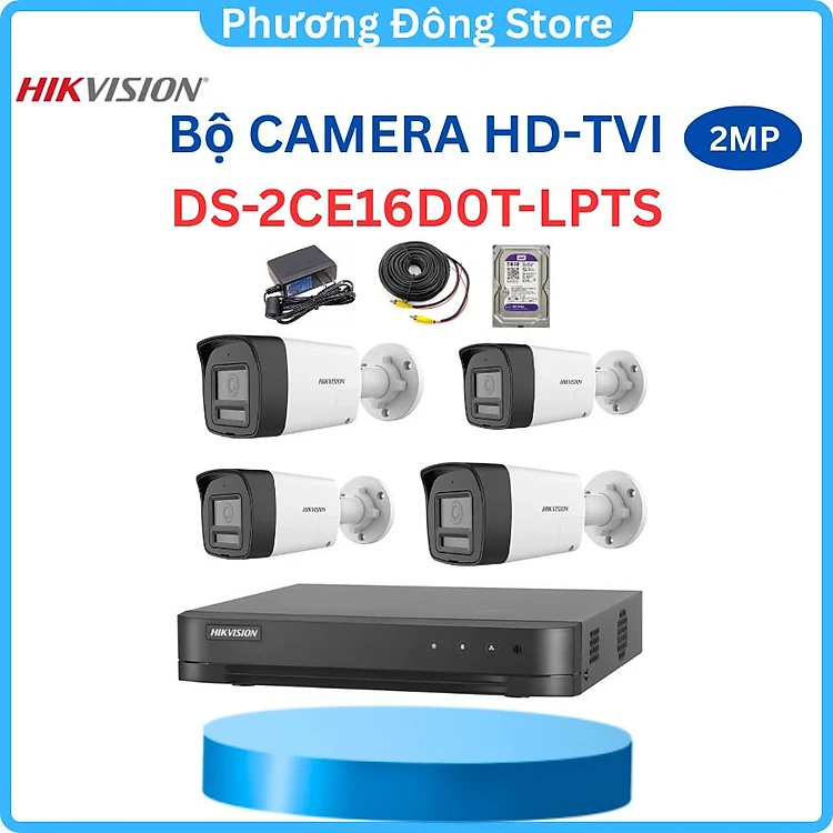 Trọn Bộ 4 Camera Quan Sát Hikvision FHD 1080P -Tích Hợp Micro Thu Âm – Đầy Đủ Phụ Kiện Lắp Đặt ,.-Hàng chính hãng