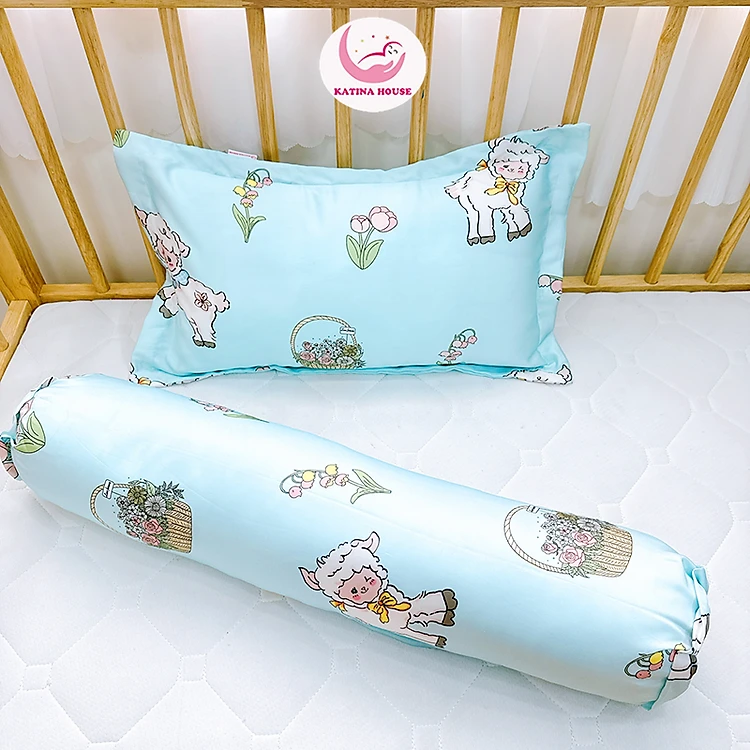 Trọn bộ gối nằm gối ôm cho bé Katina House, vải tencel 60s, gòn lông vũ nhân tạo mềm mượt mát lạnh