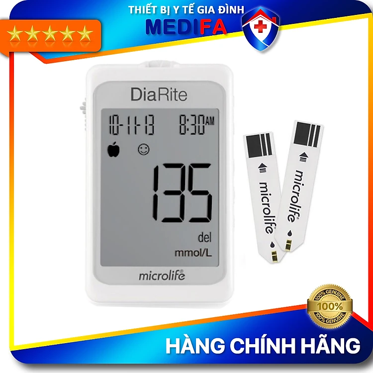 Trọn bộ máy đo đường huyết Microlife Diarite BGT gồm 50 que test và 50 kim tròn lấy máu