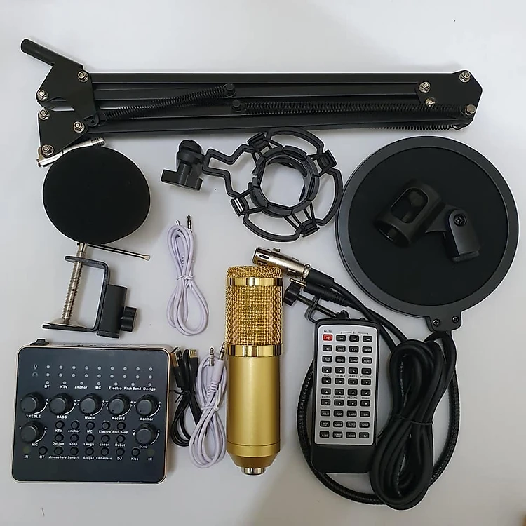 TRỌN BỘ GỒM 1 micro BM-900 2 card v10 3 dây kết nối và dây livestream 4 bông lọc 5.Chân kẹp àng lọc âm Vài điều thú vị về sound card v10 Sound card hiểu nôm na là “Card” Âm Thanh tức là thiết bị dùng để thu nhận, xử lý và phát tín hiệu âm thanh thông qua 1 thiết bị ngoại vi khác. Âm thanh trong máy tính là ở dạng digital (kỹ thuật số) muốn truyền tốt được ra ngoài cần có một thiết bị chuyển digital qua analog (tín hiệu băng tần) vậy nên Sound card thu âm V9 giúp máy bạn thực hiện điều đó. Sound card thu âm V9 là sản phẩm card âm thanh tương thích với nhiều thiết bị như smartphone, laptop, pc, máy tính bảng. Với tính năng làm méo giọng hát, thành giọng trẻ em, người già, Khả năng chèn các hiệu ứng âm thanh vào các đoạn thu như tiếng vỗ tay, tiếng hò reo, nhạc cổ vũ, tiếng chim kê với 12 hiệu ứng âm thanh, sẽ đem lại cho bạn trải nghiệm thu âm vô cùng thú vị. Thông số kỹ thuật của Sound card thu âm V10 Số kênh: 2in/2out Tần số microphone: -42db +/- 1db SNR: >105dB(đầu ra) – >88db(đầu vào) Dynamic Range: > 104db 20Hz-20kHz Tần số đáp ứng: 0 + / -0.3db, 20Hz – 20kHz Nguồn điện: 5v-0.5A Công suất: 4.0w Nhiệt độ hoạt động: 0-50*C Độ ẩm cho phép: <40% Thông số thu âm: 24bit/48kHz Trọng lượng sản phẩm: 400g Kích thước : 130x 110x 27 mm