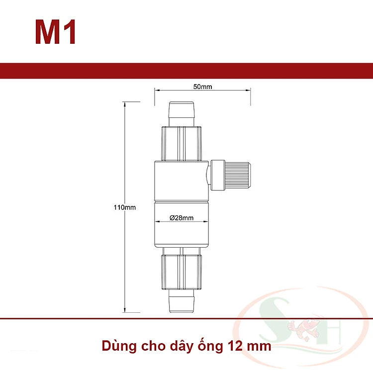 Trộn co2 Qanvee Out Tank Atomizer M1, M2 phi 12, 16 mm chữ T gắn ngoài bể thủy sinh