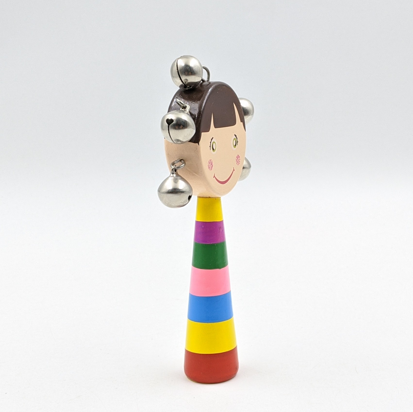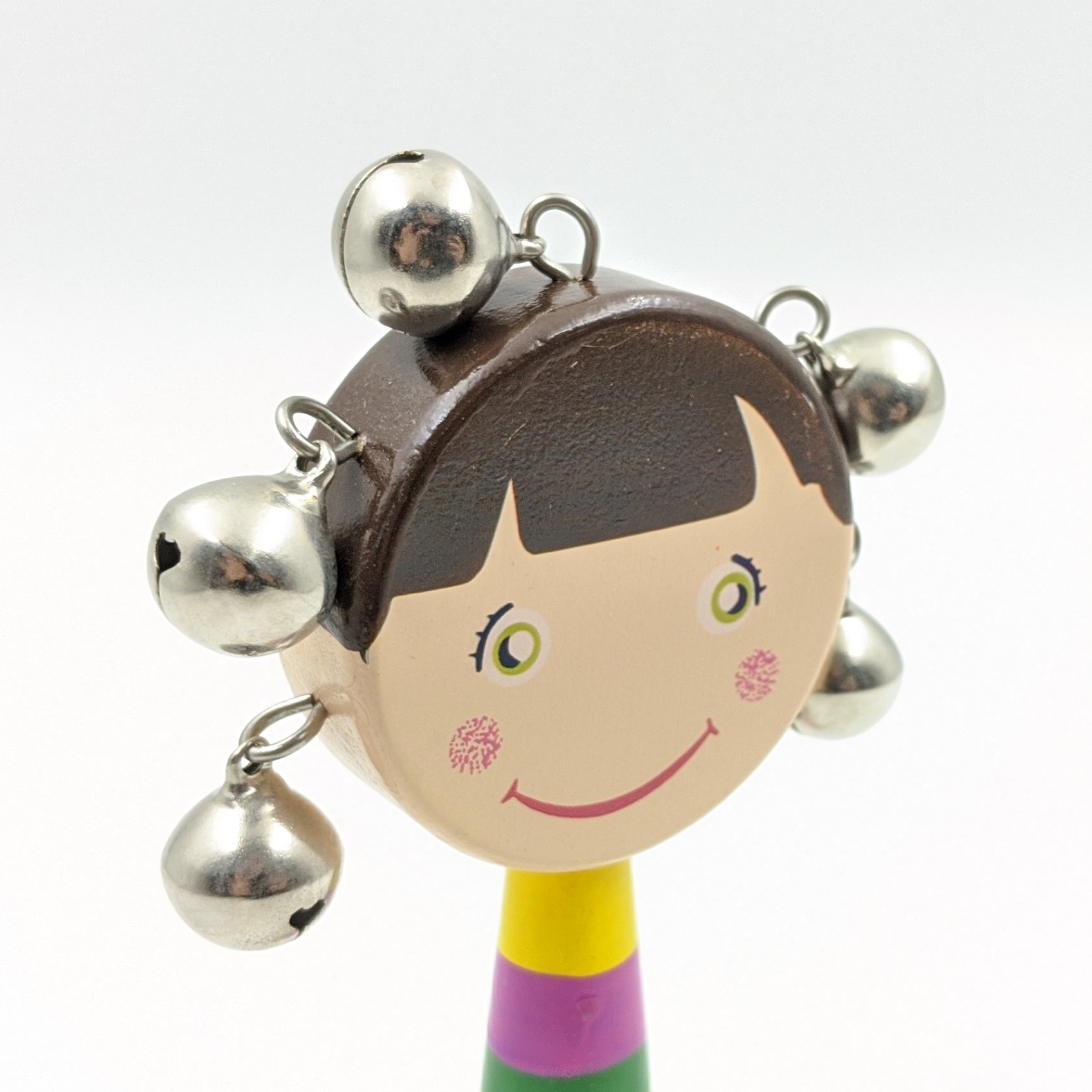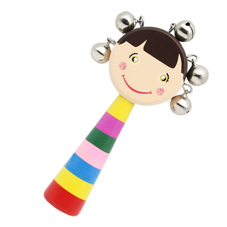 - Trống lắc cầm tay bằng gỗ nhiều màu sắc ngộ nghĩnh với thiết kế đẹp mắt, mặt trống in hình ngộ nghĩnh thu hút sự chú ý của trẻ.