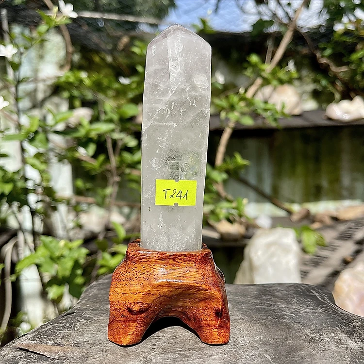 Trụ đá phong thủy thạch anh trắng tự nhiên NHASAN T241 “Tinh thể đá năng lượng” Nặng 0.25kg (KT: 14.5 x 3 (cm)