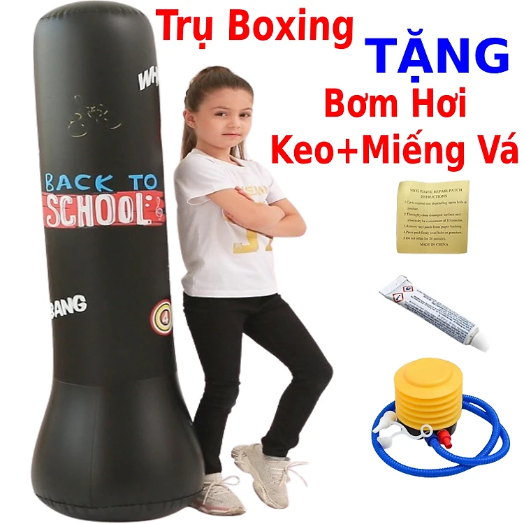 Trụ đấm bốc boxing bơm hơi dành cho bé và người lớn tặng kèm bơm hơi + keo + miếng vá đa năng dành cho trụ hơi ghế hơi nệm hơi giường hơi phao bơi