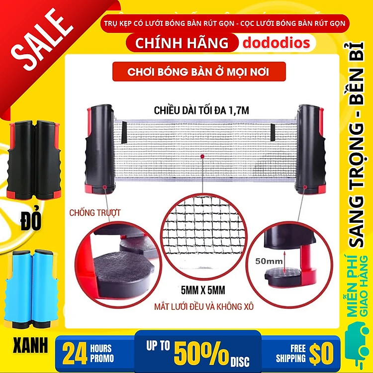 Trụ Lưới Bóng Bàn Rút Gọn Chính Hãng dododios Chất Liệu ABS Cao Cấp Chiều Dài Điều Chỉnh Tới 1,7m Vừa Bàn Bóng Bàn