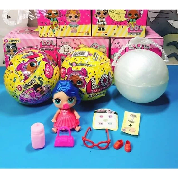 Bên trong có 1 em búp bê LOL và phụ kiện: váy, giày, bờm, bình sữa hoặc ví, tùy mỗi quả.