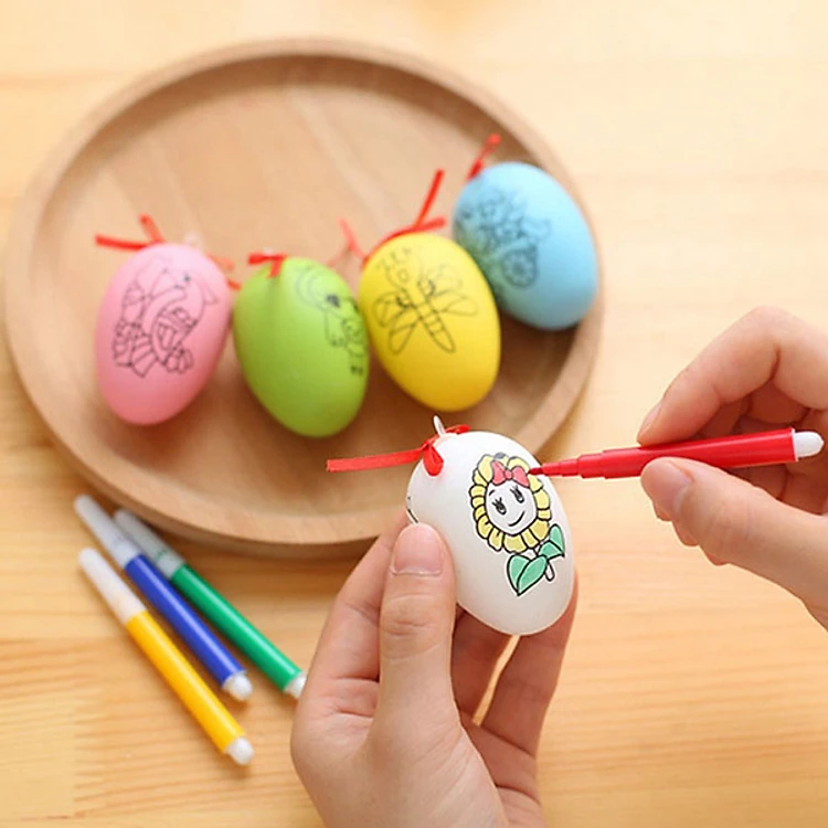 – Mỗi quả trứng đi kèm với 4 cây bút màu nước