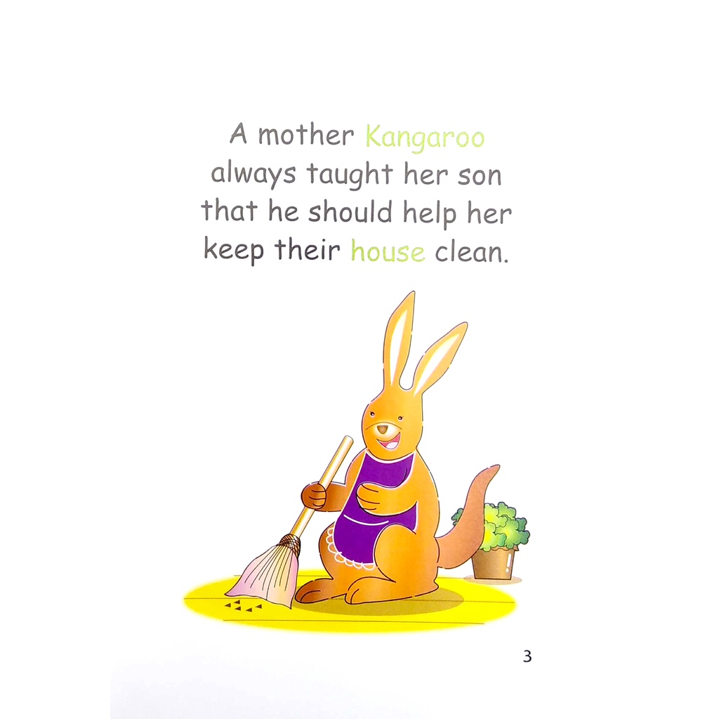 Cuốn truyện tranh kể về cuộc phiêu lưu của Kangaroo, một nhân vật vui nhộn và đáng yêu. Qua các tình huống trong cuộc sống hàng ngày, trẻ sẽ được học và hiểu được tầm quan trọng của việc giữ gìn vệ sinh cá nhân và duy trì sự gọn gàng trong môi trường sống. Cuốn sách truyền đạt những giá trị quan trọng về việc chăm sóc bản thân và tôn trọng môi trường xung quanh.