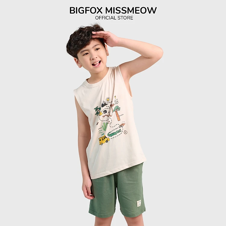 [TỪ 3-11 TUỔI (BF)] Bộ Ba Lỗ Bé Trai Bigfox, Bộ Cộc Tay Trẻ Em Mùa Hè Chất Cotton Mát In Hình Bản Đồ