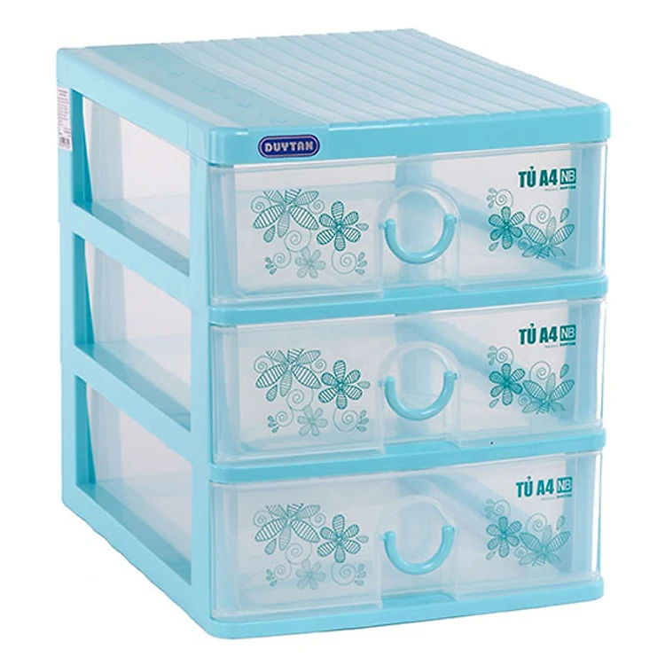 Tủ A4 Duy Tân 3 Ngăn - Nắp Bằng có thiết kế nhỏ gọn, bạn có thể để trên bàn làm việc để bảo quản những vật dụng nhỏ tránh bị thất lạc. Tủ gồm 3 ngăn kéo có độ trong để bạn có thể nhìn thấy vật được chứa bên trong mà không cần phải mở tủ để kiểm tra. Sản phẩm được làm từ nhựa cao cấp, có khả năng chịu lực và không chứa chất độc hại, an toàn cho sức khỏe người sử dụng.