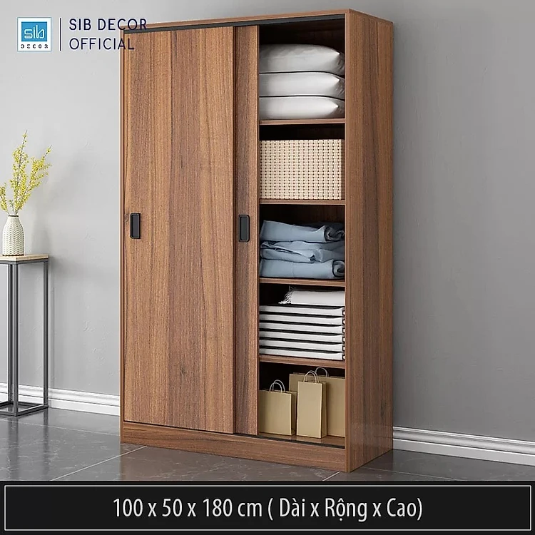 Tủ Áo Cửa Lùa Màu Walnut Hiện Đại, Sang Trọng Thương Hiệu SIB Decor TA19