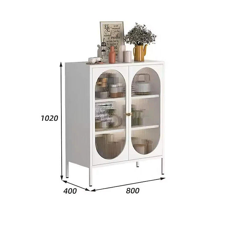 Tủ bếp hiện đại Bắc Âu Phòng ăn Phòng khách Tủ bếp màu trắng đen Cửa cong đôi trong suốt Tủ đựng đồ bằng thép