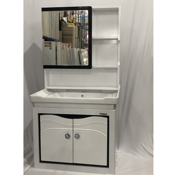 - Bộ tủ lavabo bao gồm: mặt lavabo (sứ), bộ khung tủ, bộ xả, tủ gương, óc, tắc kê, tai nắm tủ.
