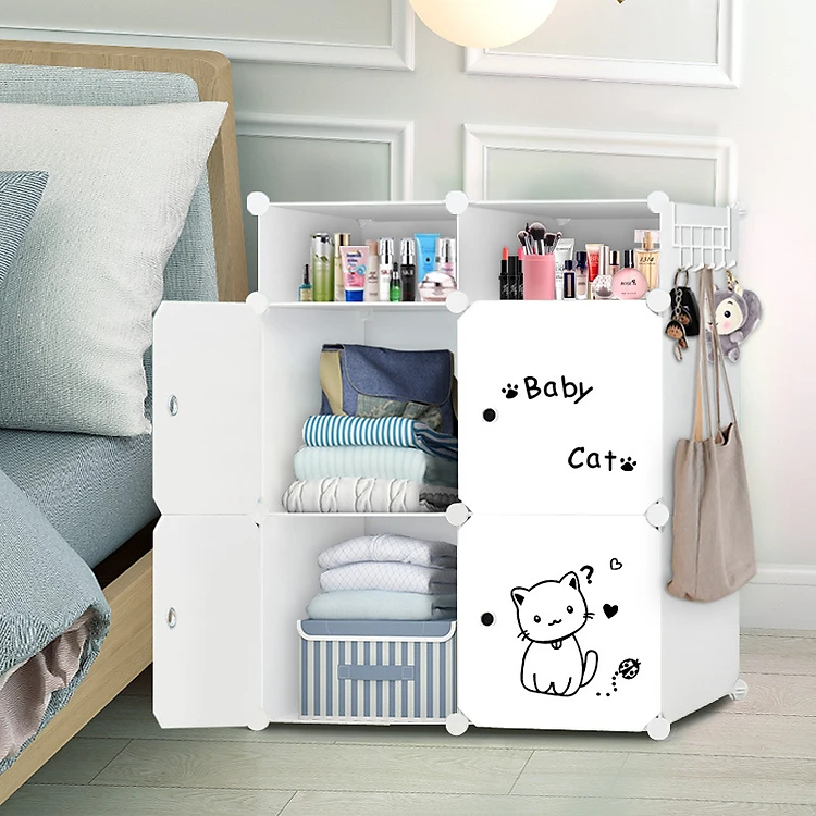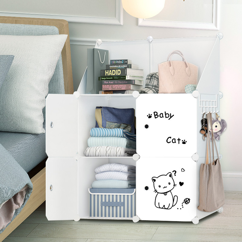 Tủ đầu giường lắp ghép cửa hình mèo dễ thương kèm móc treo
