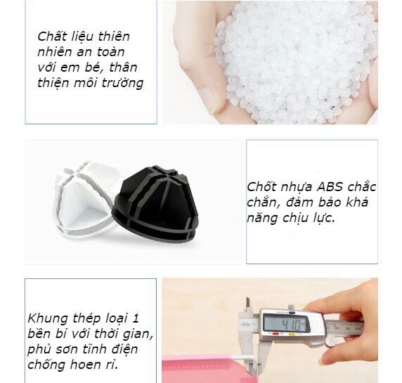 Nhựa dẻo, khung thép. Chốt nối bằng nhựa ABS cao cấp