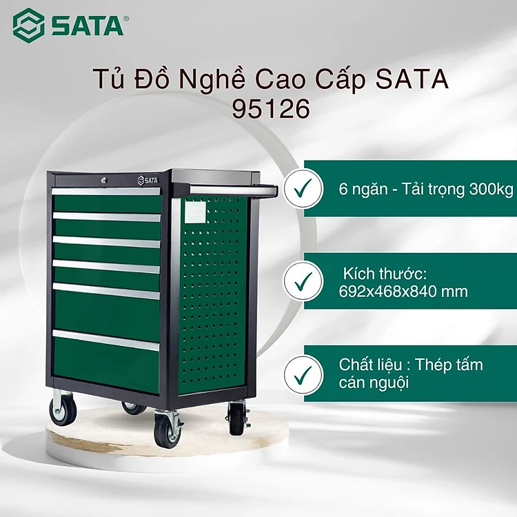 Tủ đồ nghề 6 ngăn 27 inch (692x468x840mm) SATA 95126 xe đẩy chứa dụng cụ sửa chữa - Hàng chính hãng