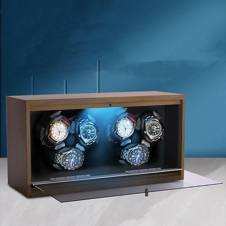 Tủ Đồng Hồ Cơ Lên Cót SAIKE SAIKE S6024 Mẫu 6 Xoay Vỏ Gỗ - Có Đèn Led - Nắp Cảm Biến
