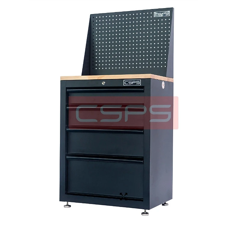 Tủ dụng cụ CSPS 61cm - 04 hộc kéo màu đen mặt ván gỗ kèm vách lưới