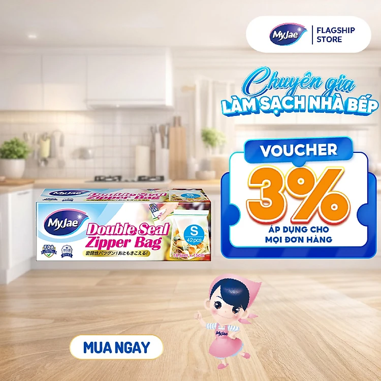 (Chọn Size) Túi Zip PE Trong Suốt 2 Đường Kéo MyJae, Túi Bọc Đồ Ăn, Rau Củ Bảo Quản Trong Tủ Lạnh
