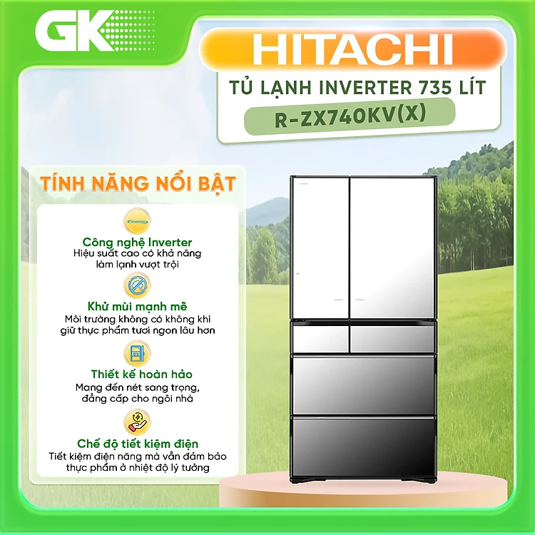 Tủ lạnh 6 cửa Hitachi Inverter 735 lít R-ZX740KV(X) - Hàng chính hãng (chỉ giao HCM)