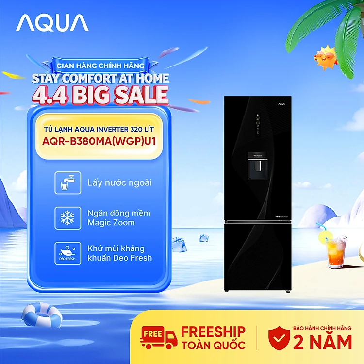 Tủ lạnh Aqua Inverter 320 lít AQR-B380MA(WGP)U1 - Bảo hành 2 năm - Freeship toàn quốc - Hàng chính hãng