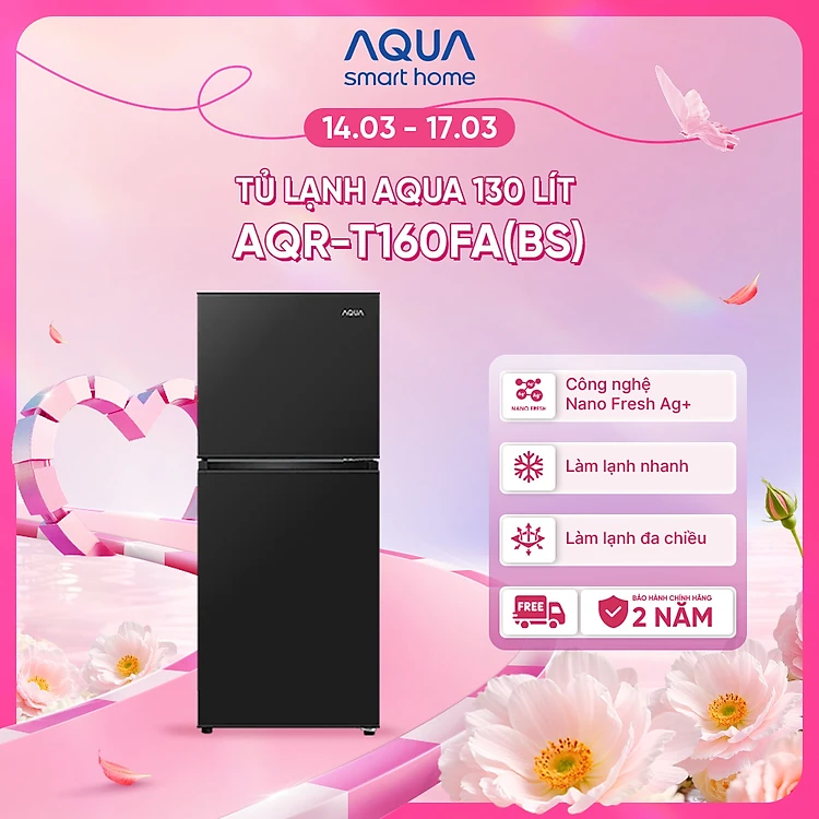 [DAILY] Tủ lạnh AQUA 130L ngăn đá trên AQR-T160FA(BS) - Freeship toàn quốc - Hàng chính hãng