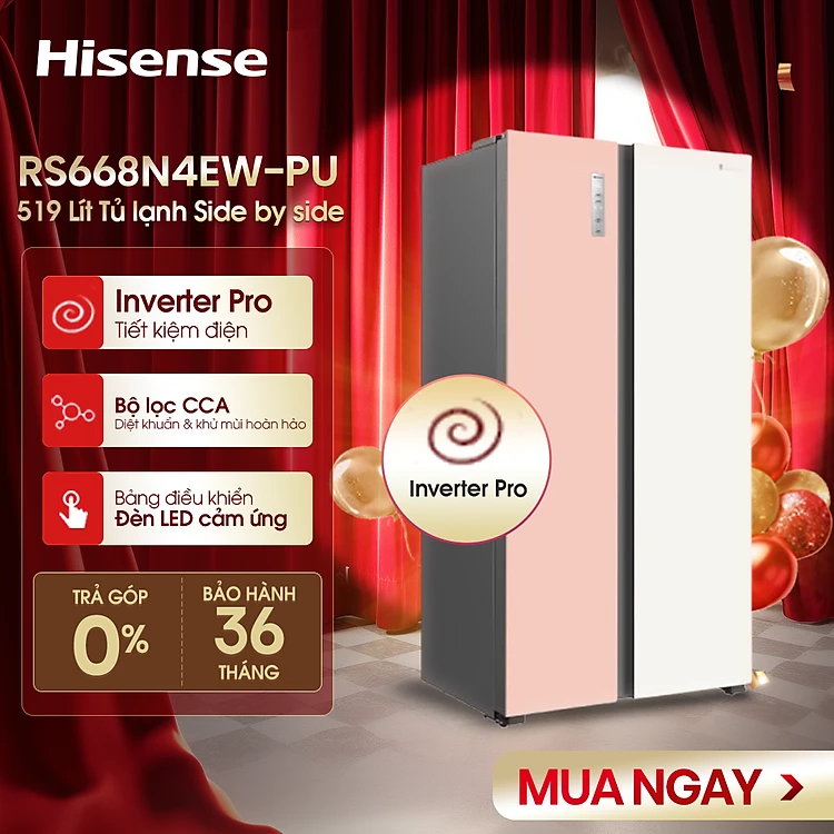 Tủ Lạnh Hisense Inverter Side By Side RS668N4EW-PU 519 Lít tiết kiệm điện, bảo hành 3 năm - HÀNG CHÍNH HÃNG
