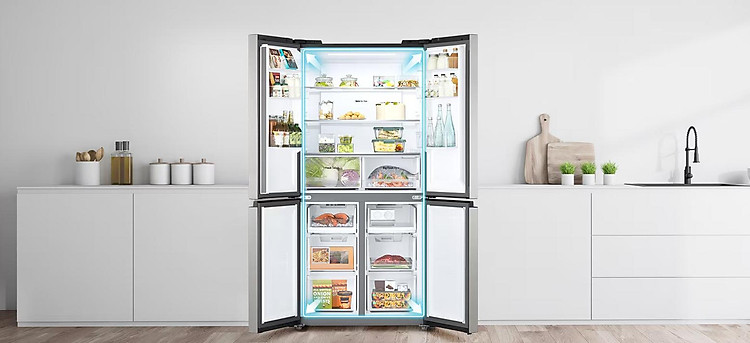 Dung tích bên trong lớn cho phép bạn lưu trữ nhiều loại thực phẩm khác nhau cùng một lúc, giúp xóa tan nỗi lo về vấn đề hết chỗ chứa trong tủ lạnh.