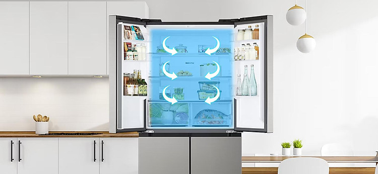 Khí lạnh lưu thông đều để tủ lạnh và thực phẩm không bị đóng băng và luôn tươi ngon. Không cần phải làm tan băng trong tủ lạnh theo cách thủ công, tủ lạnh luôn sẵn sàng để sử dụng một cách thuận tiện.