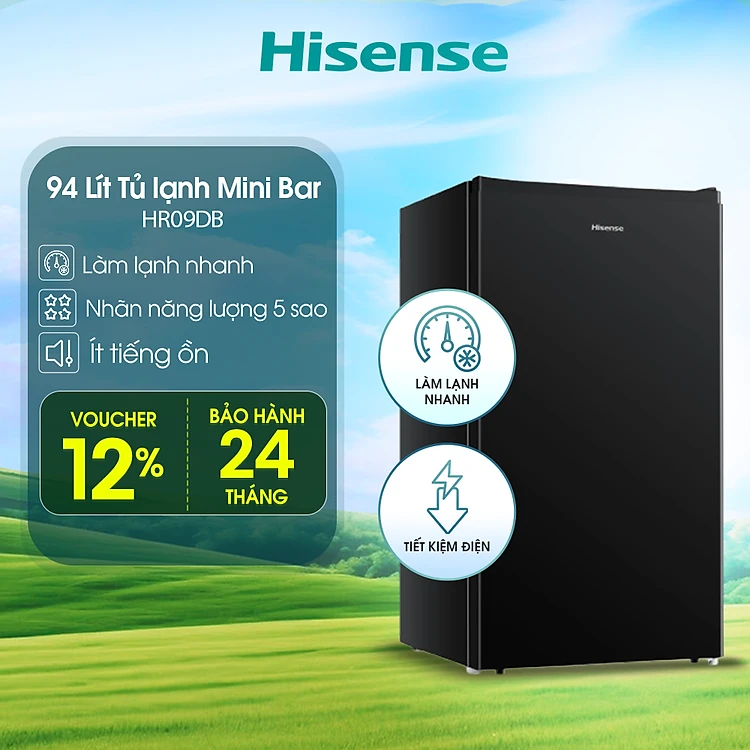 Tủ lạnh Mini Bar Hisense 94 Lít HR09DB làm lạnh nhanh, tiết kiệm điện, bảo hành 24 tháng - HÀNG CHÍNH HÃNG