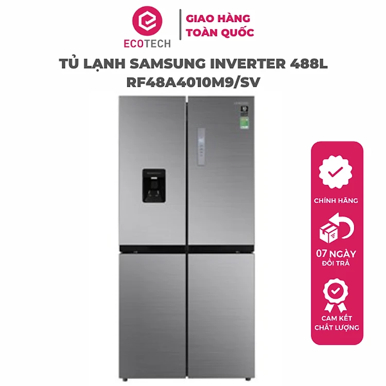 Tủ lạnh Samsung Inverter 488 lít RF48A4010M9/SV được thiết kế với dạng Multi Doo nhiều cửa nên có thể lấy thực phẩm ở những ngăn riêng tránh thất thoát hơi lạnh ra ngoài.
