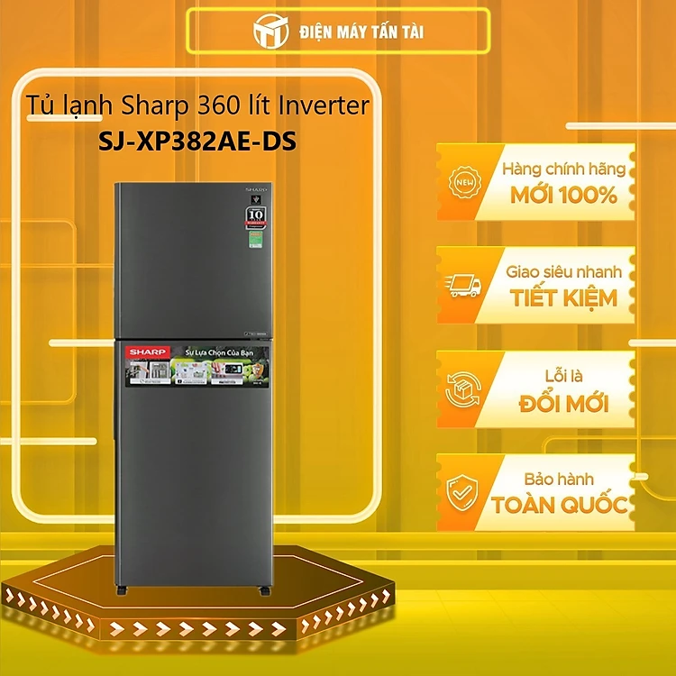 Tủ lạnh Sharp 360L SJ-XP382AE-DS Inveter - Hàng Chính Hãng (Chỉ giao HCM)